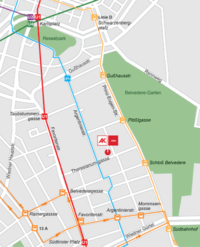 Bus 13A: Station Belvederegasse oder Argentinierstraße